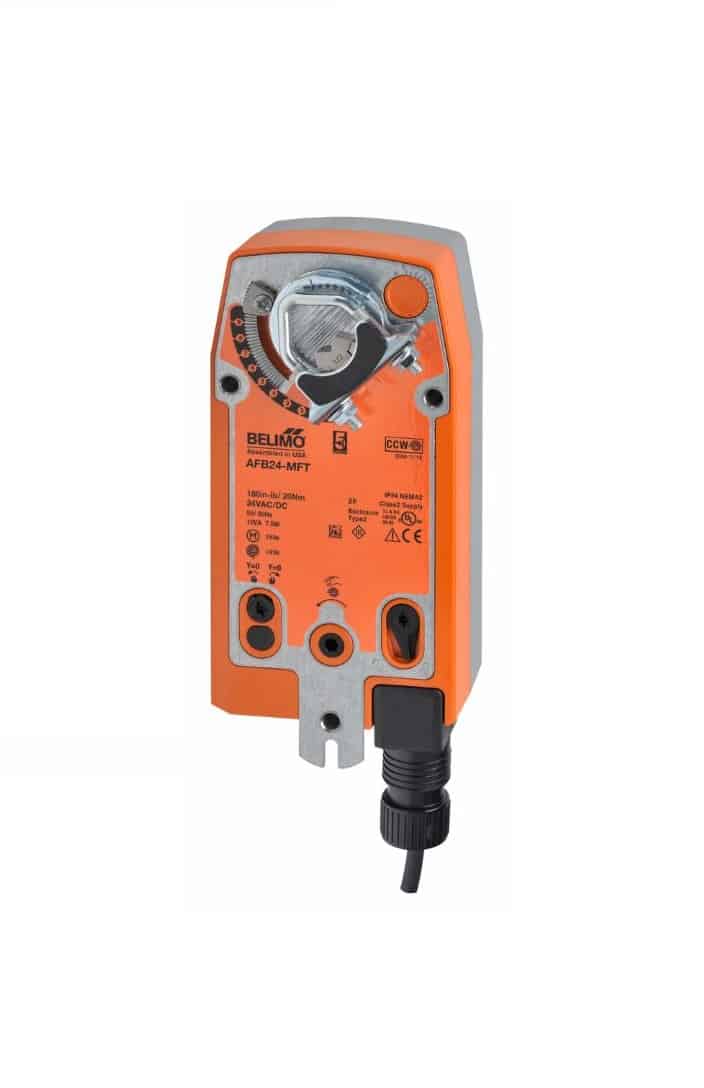 Belimo AFB24-MFT, Damper Actuator, 180 in-lb [20 Nm], Spring return, AC/DC 24 V, MFT/programmable, 2…10V control.
