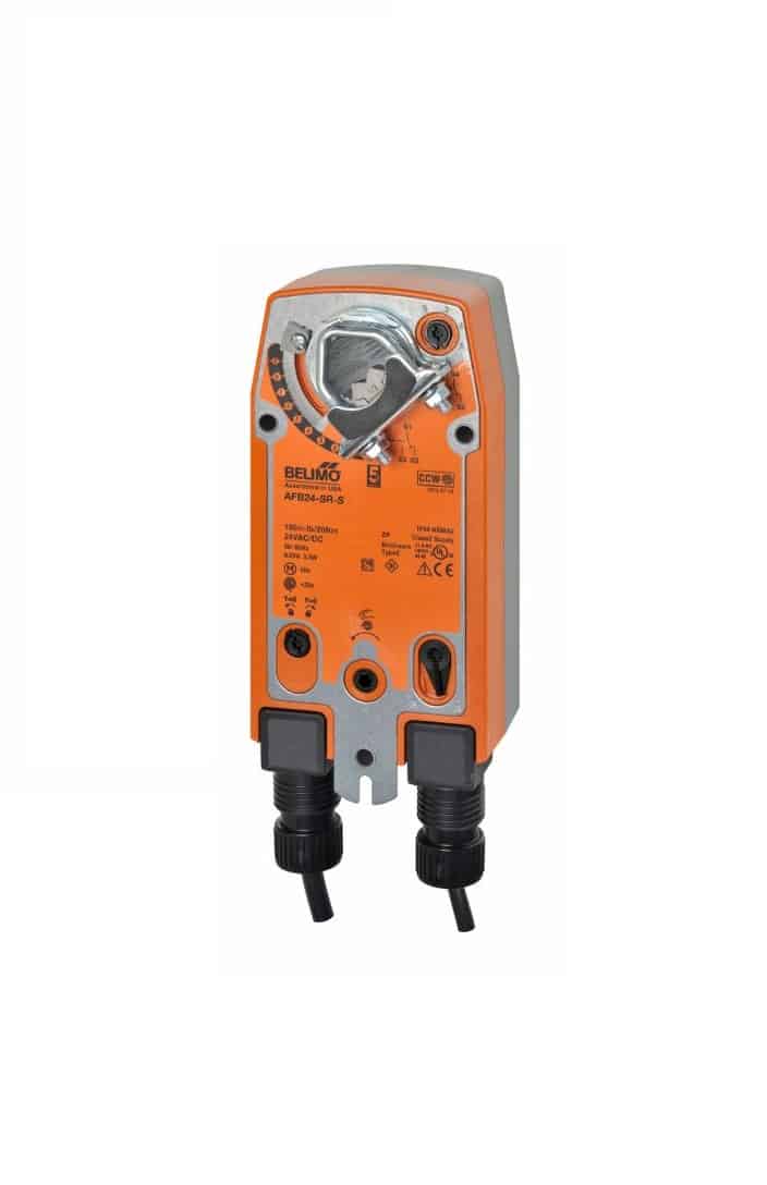 Belimo AFB24-SR-S, Damper Actuator, 180 in-lb [20 Nm], Spring return, AC/DC 24 V, modulating, 2 x SPDT, 2…10V control.