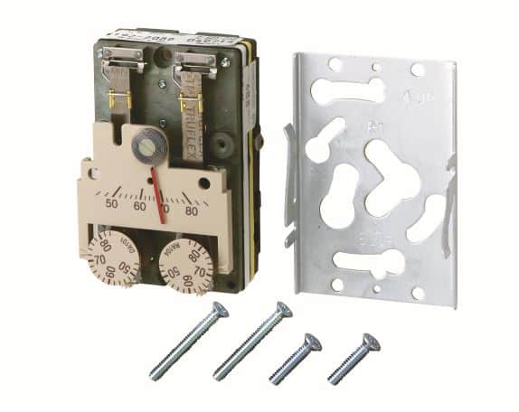 Powerstar 192 series Heating/Cooling Pneumatic Room Thermostat, reverse acting heating @ 25 psi, reverse acting cooling @ 18 psi, proportional dual setpoint, single output, two-pipe high air capacity room temperature control. Fahrenheit. Wall plate and mounting screws included.