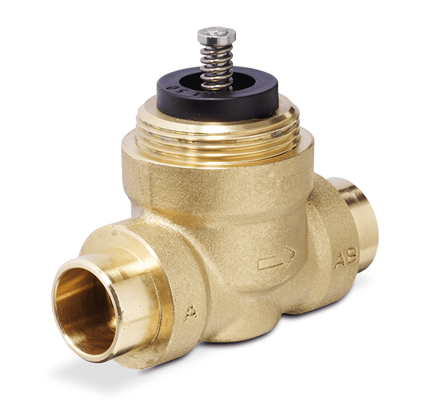 Siemens 599-00513, 599 Series Zone Valve, 1-inch, 2-Way, globe body style, 7.0 Cv, normally open/closed determined by actuator, controlled medium is water or glycol solutions to 50%, linear characteristic, ANSI Class 125, 1/10-inch (2.5 mm) stroke, 22 psi (152 kPa) close-off pressure, SWT end connections, and direct-coupled universal bonnet for actuator connection.